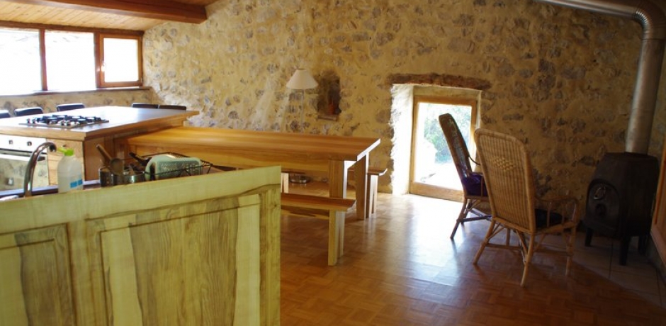 La Remise est équipée d'un frigo, d'une plaque de 4 feux, d'un four à gaz et d'un poêle à bois.