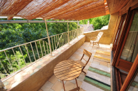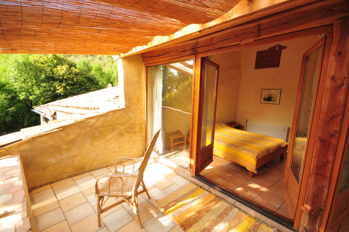 Pin noir d'Autriche : chambre avec 1 lit double et un accès à la terrasse côté sud, qui offre une vue sur les jardins et la montagne de Mare