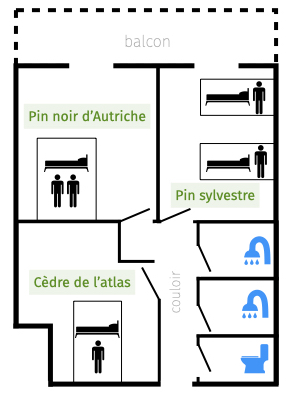 Cèdre de l'Atlas : chambre avec 1 petit lit double (120cm)